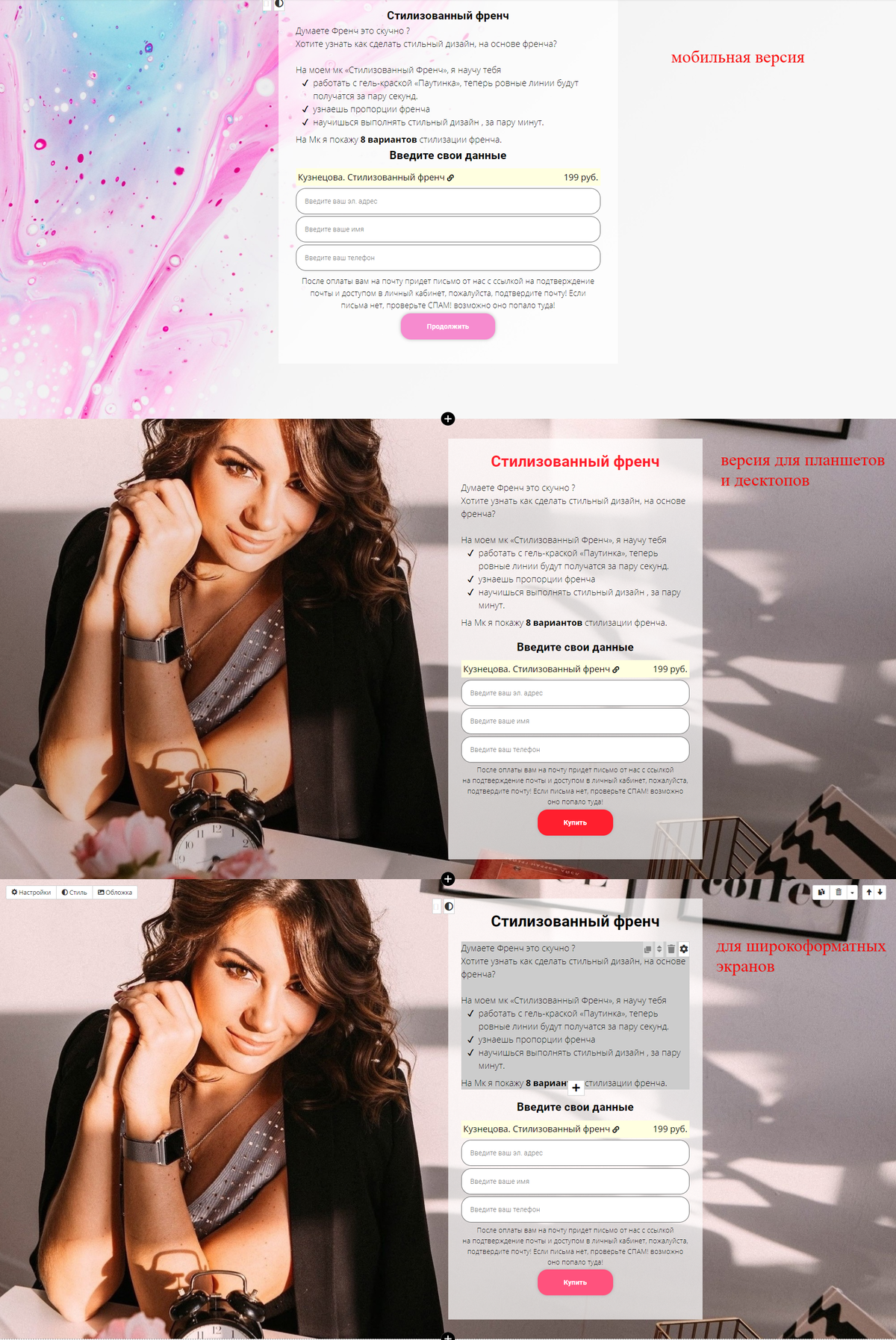 Перенос дизайна лендинга с Tilda На Getcourse и аддаптация к формам Геткурс:
