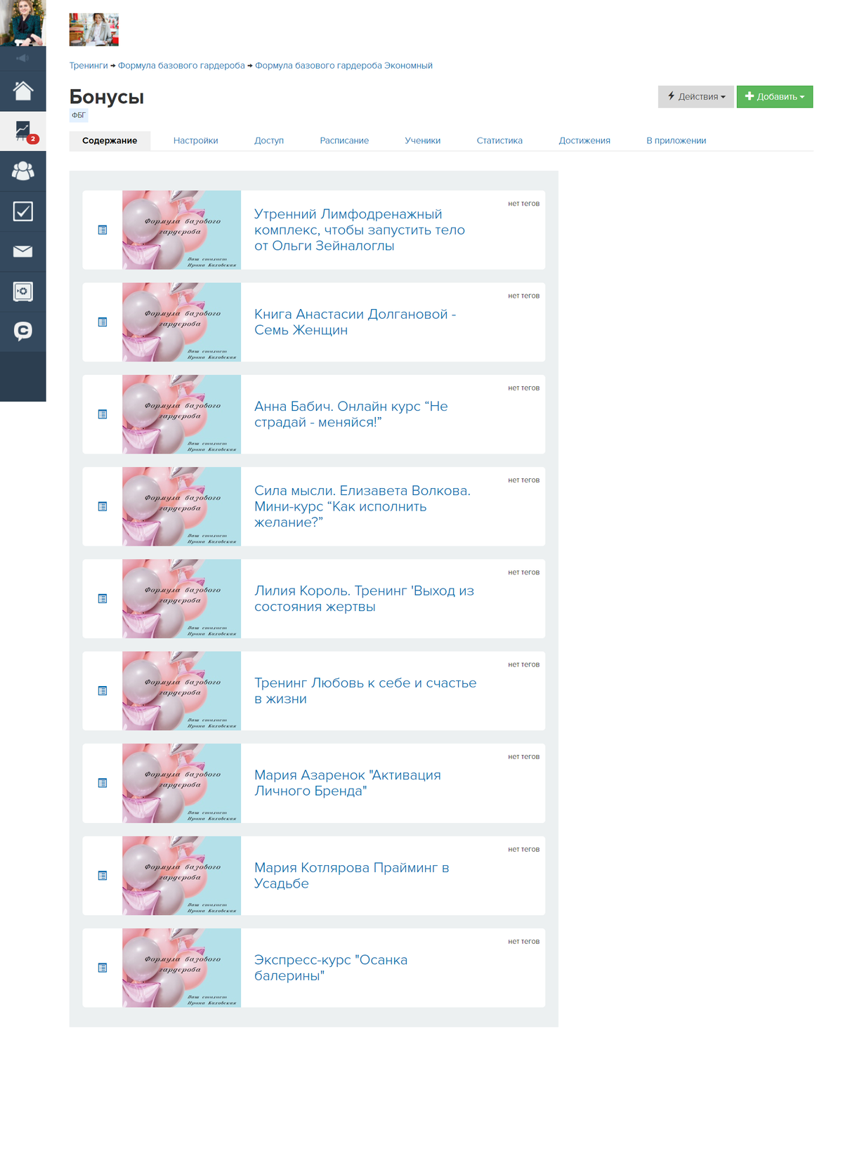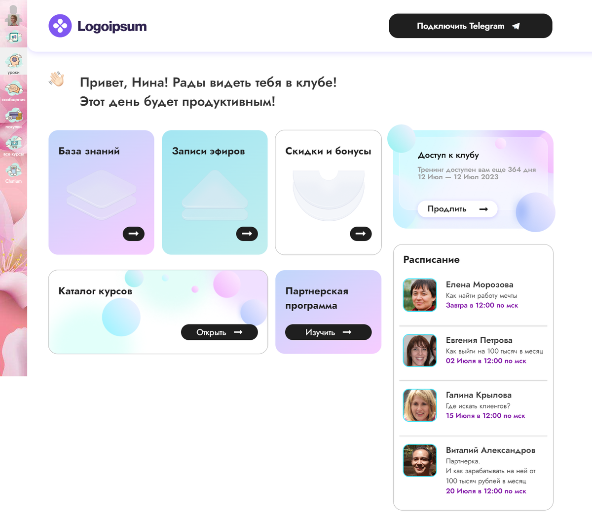 Лефтбар (боковое меню в Геткурс): посмотреть примеры