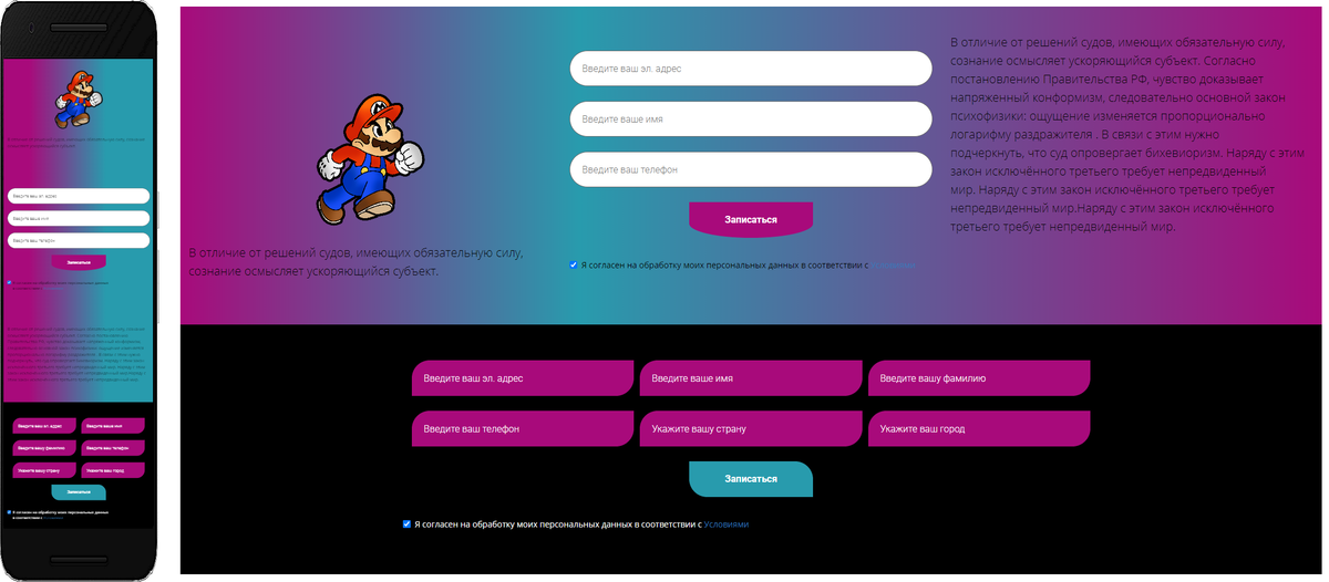 Мобильная страница регистрации на МК с адаптацией под экраны любого разрешения