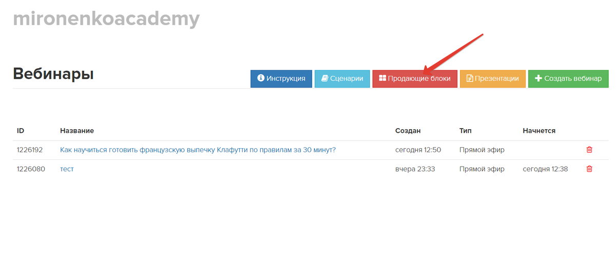 Вебинарные страницы: