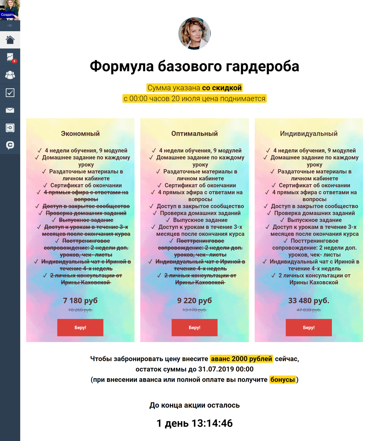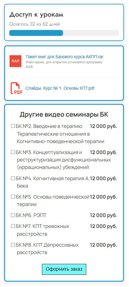 Форма продажи нескольких тарифов для института Консалдинга